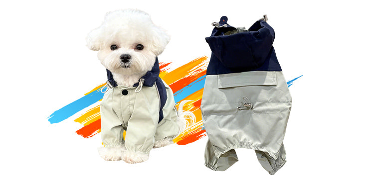 Stylish pet raincoats for small - medium dogs. Beige + dark brown/navy blue. Waterproof & windproof.